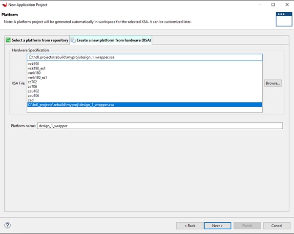 Xilinx Support Archive (XSA) file to enable the software to be developed in Vitis (Figure 7).