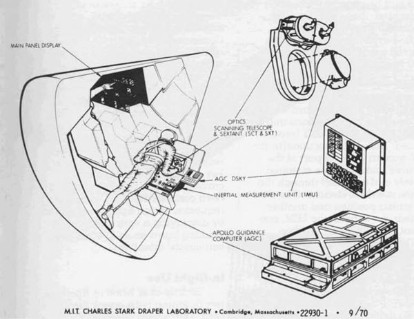 Computing for the Apollo space missions was spare, by today’s terms. There was one Apollo Guidance Computer (AGC) on the Command Module and one on the Lunar Module for all missions but one. The AGC was the first computer that used integrated chips; it was the first embedded computer. The first version of the AGC used 4,100 single three-input NOR gates by Fairchild Semiconductor. It had a real-time operating system and ran at a blazing 40KHz with a 16-bit word length. A second version of the AGC was designed in 1966 and used 2,800 dual three-input NOR gate ICs. Modern engineers would cry if they had to go to the moon with this kind of computing power. Certainly there was no room for commenting the source code! When I was a kid and complained about walking a mile to school in the rain, my dad would tell stories of walking 5 miles to school in the snow “uphill both ways.” So next time you hear a programmer complain about not enough memory… just mention the Apollo 13 Mission had 64Kb on the AGCs that the astronauts used while in space. I wouldn’t think my garage door opener trustworthy if it had 64Kb, but trusting the lives of 3 crew members to 64Kb? The astronauts were test pilots and many wanted to fly it themselves. Indeed, in the event of an AGC failure, they would have been able to by following pre-dawn curves for attitude, velocity, and g-loading.