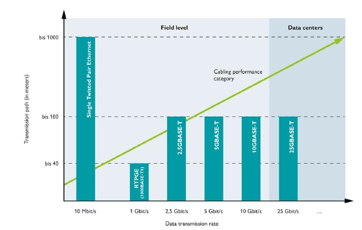 Figure 2: Standardization: The data transmission rates at the field level and in data centers are successively standardized. (Source: Phoenix Contact)