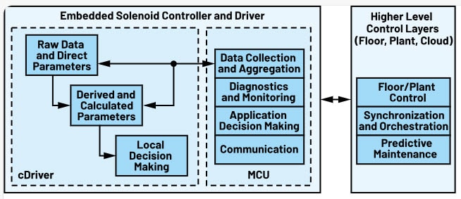 The latest silicon cDriver solutions, which consist of a smart controller and driver, enable intelligent actuators at the edge by merging sensor and actuator functions into single integrated components to be used inside embedded motion control solutions.[2] System parameters and state variables that are only available directly in or at the electromechanical actuator are measured and evaluated in place (for example, temperature, solenoid reaction time, and motor load value).