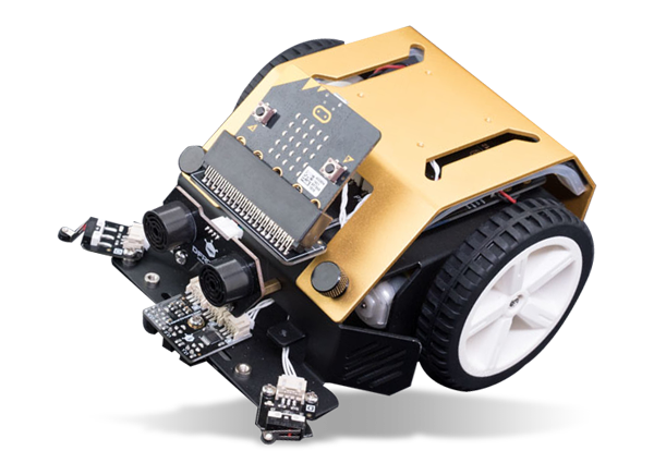 The SparkFun ROB-14679 :MOVE Mini Buggy Kit (Figure 2) allows users to build a squarish two-wheel buggy that can be operated autonomously. The buggy can be controlled using micro:bit or programmed to perform remote control projects via a Bluetooth® app or with use of a second micro:bit as a controller. The buggy, which requires an intermediate level of construction knowledge, runs on two continuous rotation servo motors controlled by altering the pulse width modulation (PWM) signal using servo blocks found in the Microsoft MakeCode block editor software. The buggy also lights up, using five LEDs that can be programmed to be used as indicators, reverse lights, and more. The kit also includes a Kitronik :MOVE servo:lite board, which can be used with the micro:bit to build other movement-based projects.