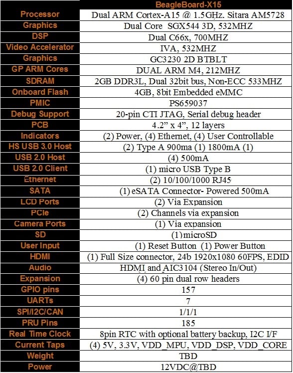 - TI AM5728 processor 2 x 1.5GHz Arm Cortex-A15