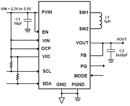 Diodes Incorporated AP7220x DC-DC Buck-Boost Converters are high current synchronous converters that provide high efficiency, excellent transient response, and high DC output accuracy. The buck-boost converters come with a four-switch H-bridge configuration that supports buck and boost operation with 2A continuous output current. These AP7220x converters integrate a two-wire serial interface consisting of a bidirectional serial-data line, SDA, and support SCL clock rates up to 3.4MHz. The buck-boost converters feature a 2.5MHz switching frequency, ultrasonic operation programmable through I2C, and adjustable overcurrent limit. These converters are available in 20 balls WLCSP package with 2.125mm x 1.750mm dimensions. Typical applications include smartphones, tablets, and portable customer devices.Features