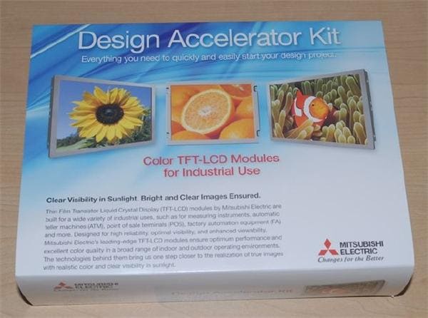TFT LCD Design Accelerator KitsMitsubishi offers TFT LCD Design Accelerator Kits to cover the most popular resolutions and interfaces, including XGA, SVGA, VGA, WXGA, WVGA in either LVDS or CMOS interface. The kits include everything you need to quickly build and demo your TFT LCD design. The Mitsubishi TFT LCD Design Accelerator Kits include a video controller, signal converter, LED backlight drivers, AC power adapter, cables, and more. Kit Contents: